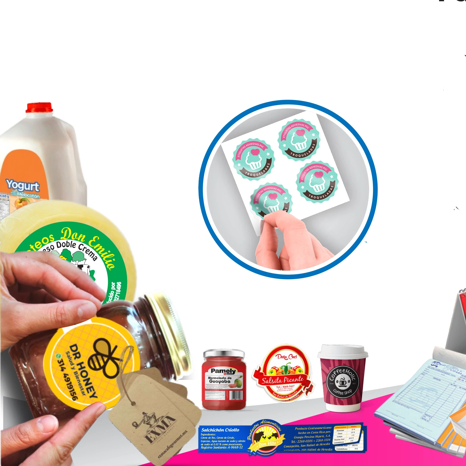 Etiquetas impresas en vinilo listas para dar identidad a tus productos. Resistentes al agua